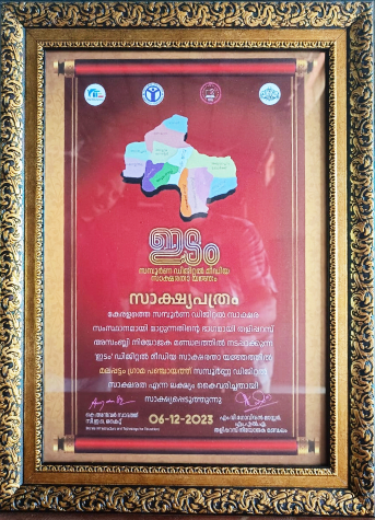 മലപ്പട്ടം ഗ്രാമപഞ്ചായത്തിന് സമ്പൂര്ണ ഡിജിറ്റൽ സാക്ഷരതാ പട്ടം